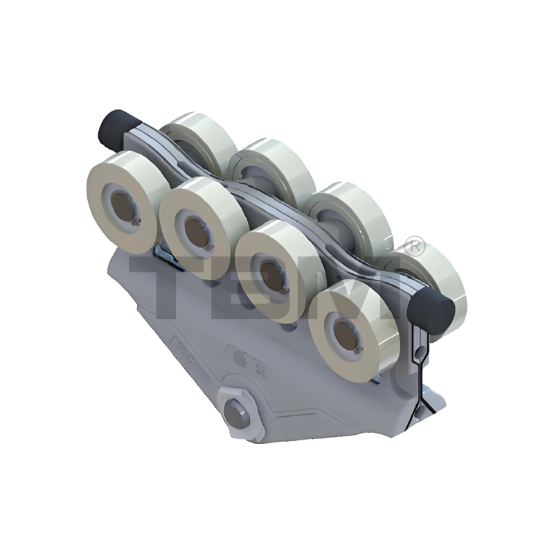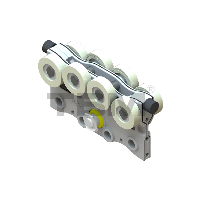 ■ Căruciorul este turnat/forjat din nailon de înaltă rezistență, rezistent la uzură, pentru o alunecare lină și o operare ușoară. Two rows of upper and lower rollers provide pry-resistant and anti-bias protection.