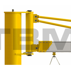 | Axa de rotire a macaralei cu braț de 270° este situată pe două urechi deasupra coloanei. Lagărele de susținere plane și bucșele de cupru auto-lubrifiante sunt instalate între urechile superioare și inferioare și axa de rotire. Acest lucru asigură o rotire flexibilă și atenuează oscilația inerțială a brațului când se oprește. Limitele externe ale unghiului de rotire sunt prevăzute pentru a regla unghiul de rotire al brațului. |