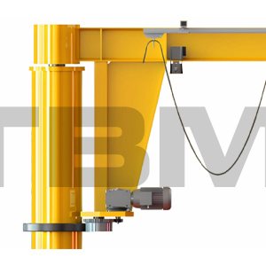 | Axa de rotire a macaralei cu braț de 360° este situată direct pe tubul circular al macaralei cantilever, concentric cu coloana. Alimentarea este furnizată printr-un inel colector de 360°, permițând o rotație nelimitată de 360 de grade. Limitele exterioare de rotire pot fi utilizate și pentru a regla unghiul de rotire al macaralei cu braț. |